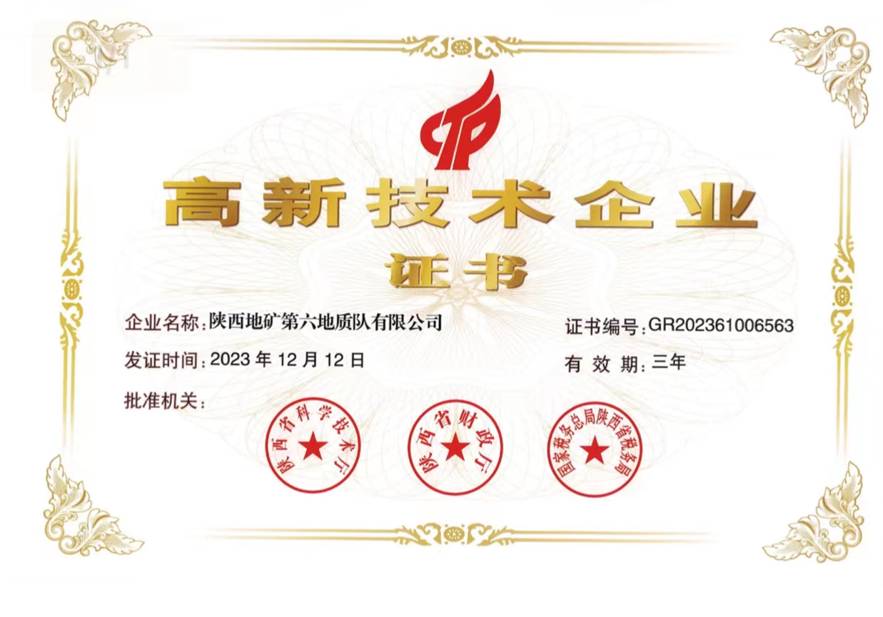 喜報!陜西地礦六隊(duì)取得高新技術(shù)企業(yè)證書